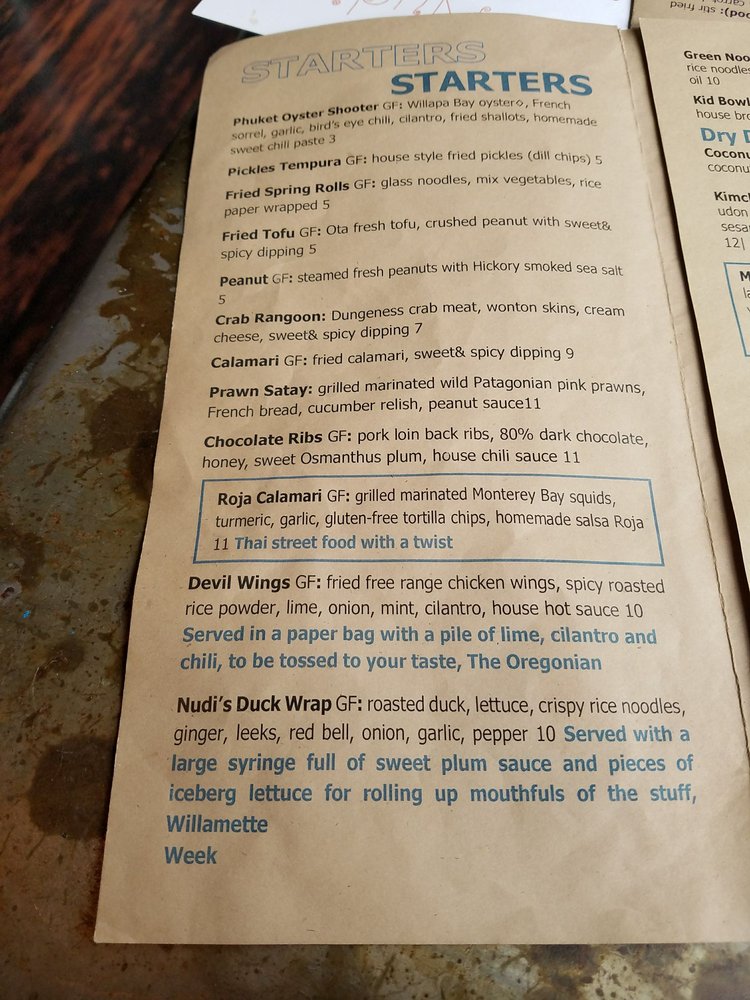 Nudi, located in Portland, offers a unique blend of Asian Fusion and Thai cuisine with a focus on noodles. The menu caters to various dietary needs, including vegan and vegetarian options. With a range of amenities such as outdoor seating, free Wi-Fi, and a full bar, Nudi ensures a pleasant dining experience. Signature dishes like Miso Ramen and CocoCauliflower showcase the chef's creativity and attention to detail. Customers rave about the Devil Wings and the cozy ambiance of the restaurant. Whether you're looking for a quick lunch or a relaxed dinner, Nudi provides a diverse selection of flavorful dishes that will leave you craving for more. Don't miss out on this gem in the heart of Portland for a culinary journey that delights the senses.